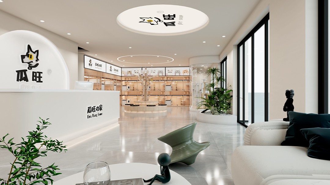 采用可移动隔断与多功能家具系统,灵活划分活体展示区、美容SPA区、寄养舱及零售区。例如,犬类活动区配备智能防撞护栏与自动喂食系统,猫柜集成恒温恒湿新风模块,确保宠物舒适度。 - 环保材质与健康生态