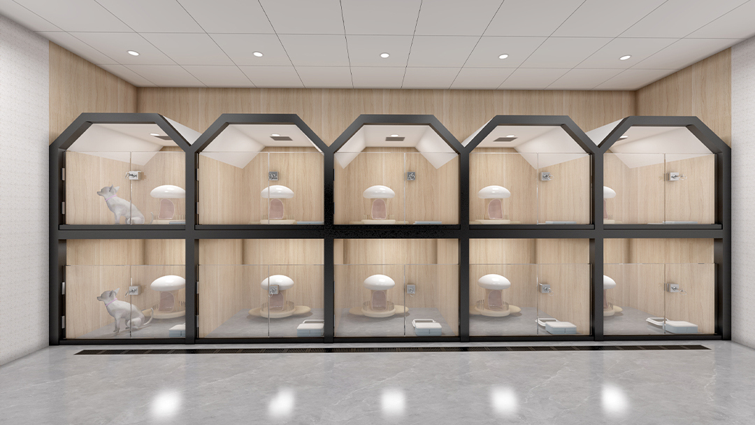 地面选用环氧树脂防滑地坪,墙面采用抗菌PVC板材,笼舍使用食品级不锈钢结构,杜绝安全隐患。通过物联网传感器实时监测温湿度、空气质量,联动空调与除臭系统,营造洁净环境。 - 科技赋能服务体验