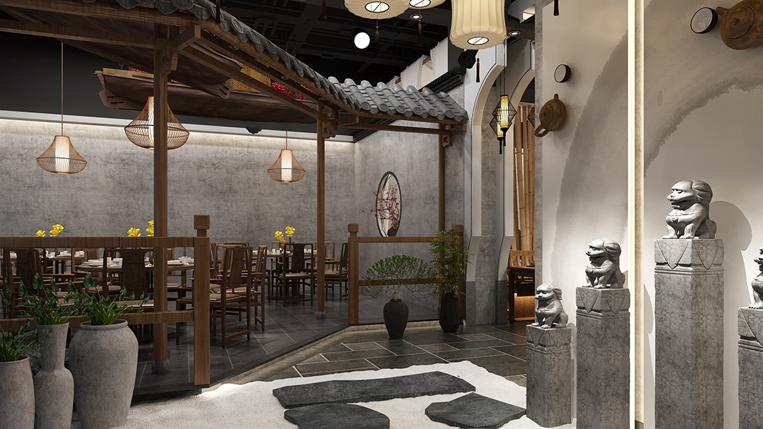 杭州新中式快餐店装修设计中,我们精心挑选青砖、瓦片、竹编、石雕等杭州特色材料。青砖与瓦片铺就墙面地面,古朴厚重,似在诉说杭州千年的历史故事;竹编元素巧妙融入隔断、灯具,轻盈灵动,为空间增添自然清新之感;石雕摆件点缀其间,或为花鸟,或为山水,尽显江南的细腻雅致。这些地域特色材料相互交织,不仅强化了餐厅的地域感,更营造出一种宁静、舒适的用餐氛围。顾客踏入店内,仿佛穿越时空,置身于杭州的旧时光里,在享受美食的同时,感受地域文化的独特魅力,开启一场味蕾与文化的体验。