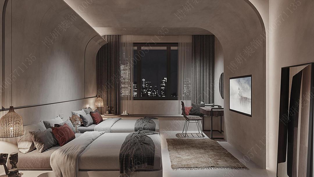 杭州露营风酒店设计装修设计,以“城市野趣”为核心理念,通过架空木栈道、仿真草坪与集装箱模块组合,在都市中打造沉浸式自然场景。室内采用做旧原木、帆布与金属收纳系统,搭配全景观星天窗及仿真篝火装置,兼顾安全与氛围感。智能控制系统实现帐篷区温湿度调节,公共区域设多功能户外装备墙及摄影打卡点,将露营体验与精品酒店舒适度完美融合,形成差异化竞争优势。