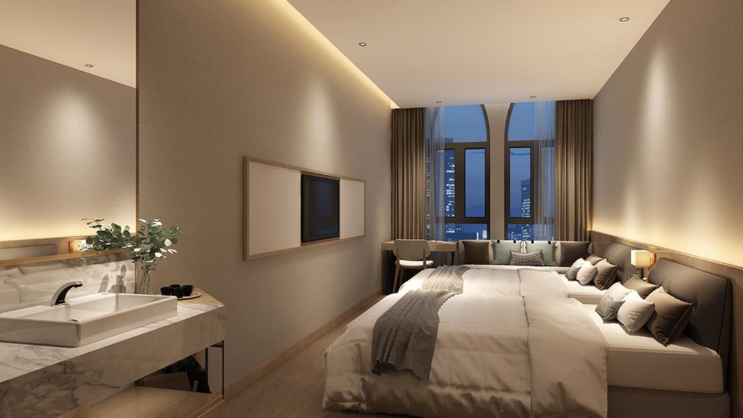 杭州精品商务酒店装修设计,本案以“隐逸商务”为核心理念,巧妙融合东方禅意与现代高效。大堂以浅灰石材构建出宁静雅致的抵达体验,前台背景墙嵌入动态水墨数字屏风,动静相宜。客房采用模块化智能系统,一键切换会议、休憩模式;隔音墙体与人体工学办公家具,保障高效工作。重点打造24小时静音共享书房与城市观景茶室,为商务旅人提供闹中取静的能量补给站,实现商务功能与心灵休憩的完美平衡。