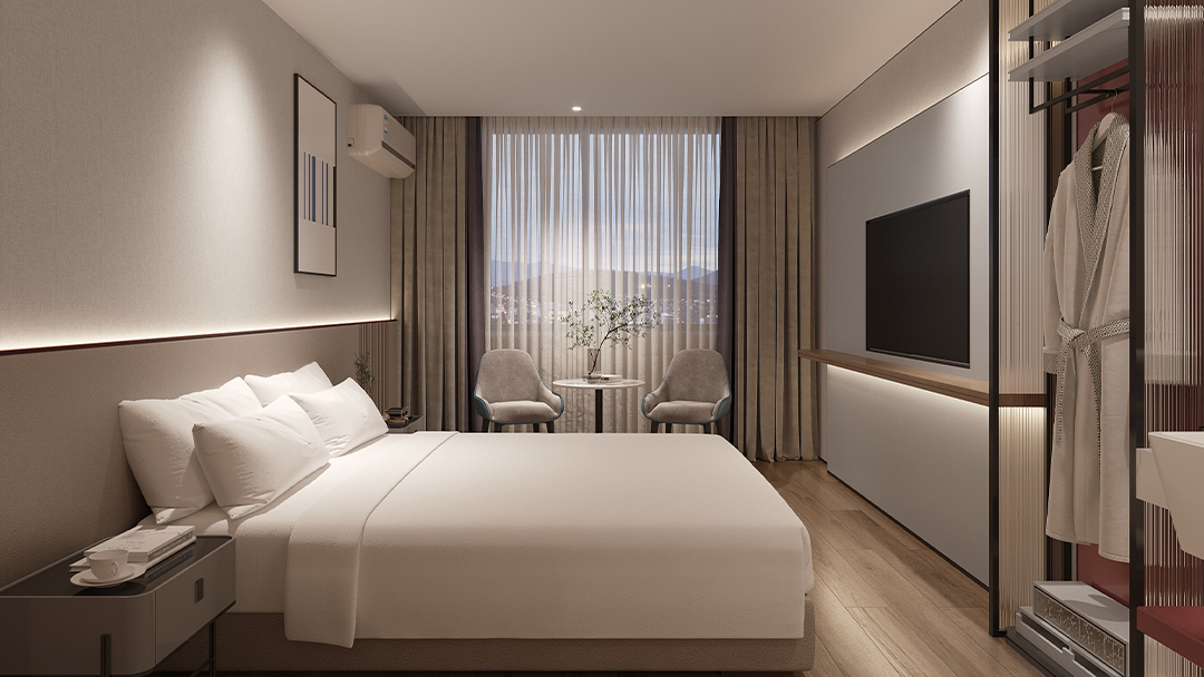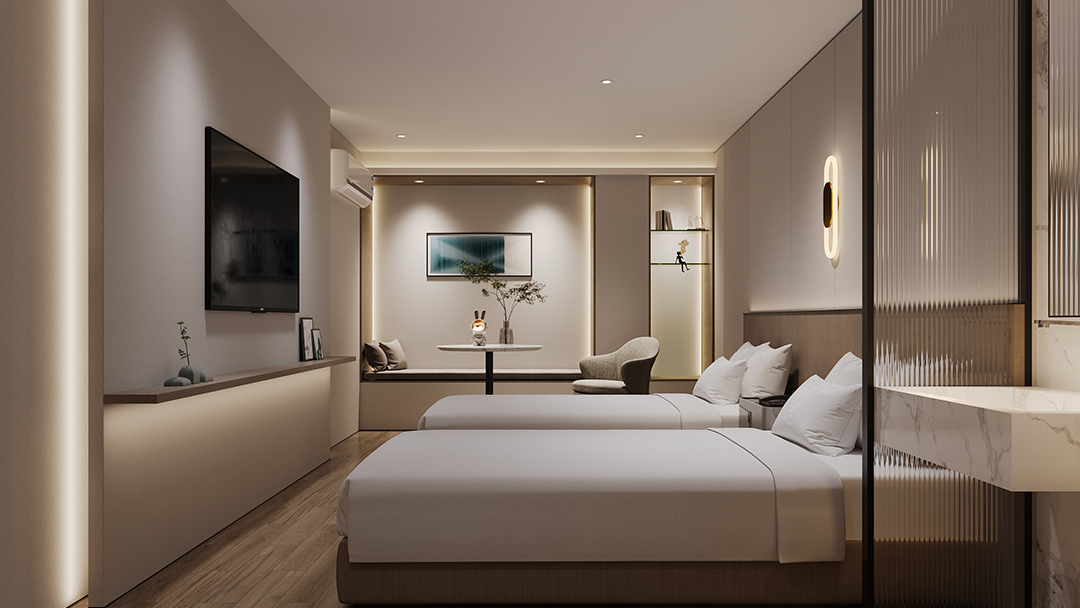 杭州商务会议酒店设计装修,本案以“高效赋能·优雅会议”为核心,将智能科技与东方商务美学深度结合。会议厅采用模块化隔断系统,支持多场景灵活切换,并嵌入全息投影与同声传译设备;墙面选用吸音波纹板材,确保声场纯净。公共空间以浅木纹与深灰石材铺陈,打造静谧休憩走廊。重点设计“云端董事会议室”——270°环幕视野搭配智能会议记录系统,实现高效决策与杭州城市意象的视觉融合,重塑高端商务体验新标准。