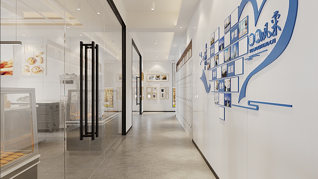 杭州烘焙培训机构装修设计,本案以“透明工坊”为理念,打造全流程可视化的教学场景。操作区采用环形岛台布局,配备嵌入式发酵箱与可升降智能屏幕,实现360°无死角示范。墙面运用抗菌不锈钢与暖调洞石混搭,顶部集成专业排烟与补光系统。重点打造“材料感官墙”——将面粉、酵母等原料以实验室标本形式陈列,结合温湿度显示屏。阶梯观摩区铺设可擦写桌面,学员可实时记录配方要点,在洁净高效的现代厨房中传递精准烘焙美学。