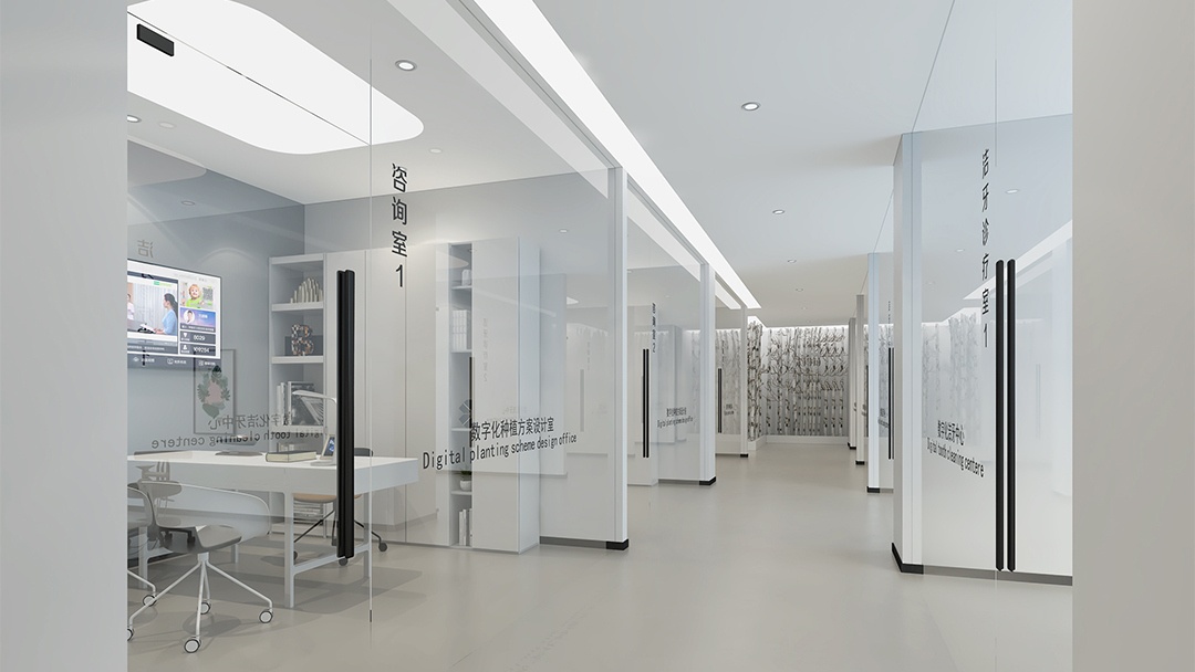 针对口腔诊所的特殊性,博妍装饰特别注重细节处理:独立诊室配备全景式玻璃隔断,保证私密性的同时引入自然光线;消毒供应区采用透明可视化设计,增强操作透明度与信任度。此外,公司还引入BIM技术实现多专业协同,并通过AR/VR技术让客户提前预览装修效果,确保设计方案精准落地。