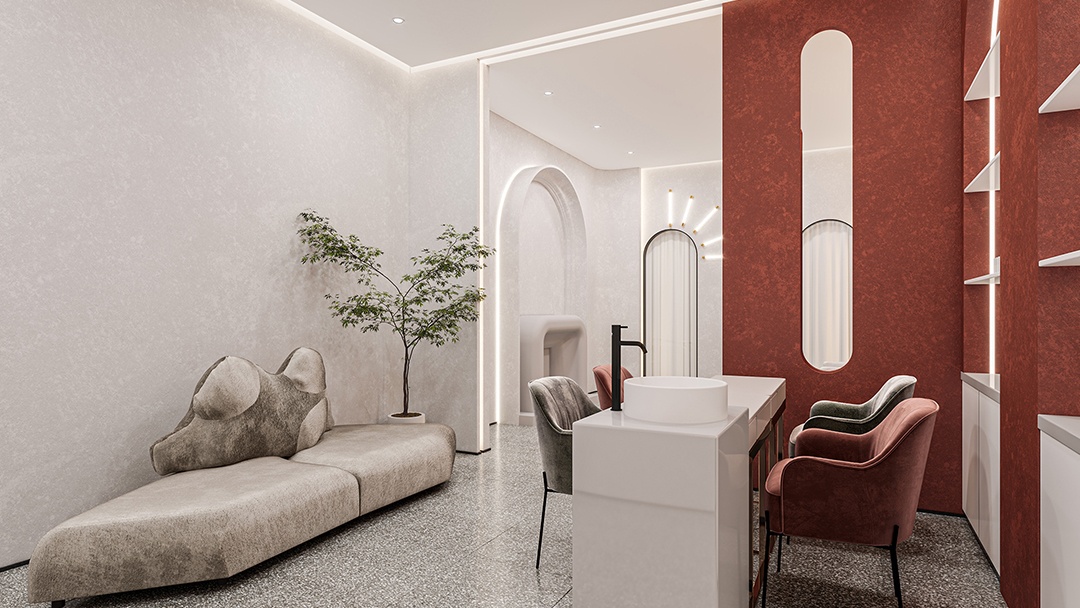 杭州韩系美甲店装修设计,以炽烈红韵,勾勒精致美学空间;打破常规,诠释热情与优雅的碰撞美学。设计,以“炽烈与精致”为核心,选用深红、酒红等层次丰富的红色系墙面,搭配金属线条勾勒轮廓,营造出高级感与视觉张力并存的氛围,瞬间抓住顾客目光。空间焦点,落于定制大理石台面——洁白底色上流淌着天然灰纹,冷冽质感与红色背景形成鲜明对比,既凸显美甲操作的精致感,又便于清洁维护。开放式美甲区,以红色高脚椅搭配智能补光镜,满足社交分享需求;私密包间,则通过红色绒帘与暖光灯带,打造沉浸式变美体验。细节处融入韩式简约装饰,如几何造型摆件、抽象艺术画,让空间在热烈中不失格调,成为杭州美甲界的潮流新地标。