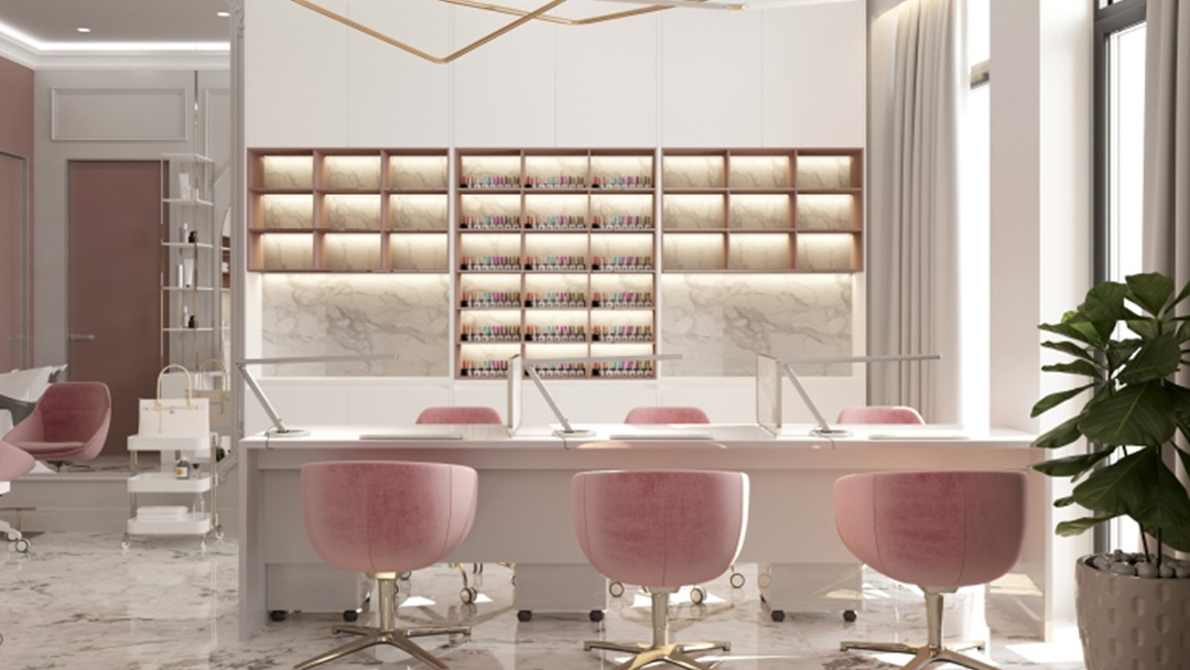 杭州简约风美甲店,以“少即是多”的设计哲学,摒弃繁复装饰,用干净利落的线条与纯粹的色彩,打造返璞归真的变美空间。整体,以白色为主色调,搭配粉色家具与暖光灯带,营造出宁静、通透且不失温度的氛围,让顾客在喧嚣都市中寻得一处放松身心的净土。空间布局上,开放式美甲区以模块化设计实现灵活调整,白色大理石台面搭配极简风高脚椅,兼顾实用性与美学感;私密护理间,则通过半透明玻璃隔断与隐藏式收纳,保持空间开阔感。细节处融入杭州本土元素,让简约中透露出细腻的文化韵味,成为都市女性追求品质与格调的指尖美学空间。