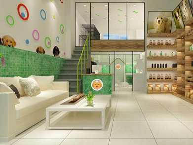 3、细节优化:墙面安装可拆卸式宠物沐浴架,方便固定挣扎的宠物;顶部预留消毒灯轨道,每日营业结束后进行紫外线消杀;洗护区与干区之间设置玻璃隔断,既保持通透感又防止水花外溅。