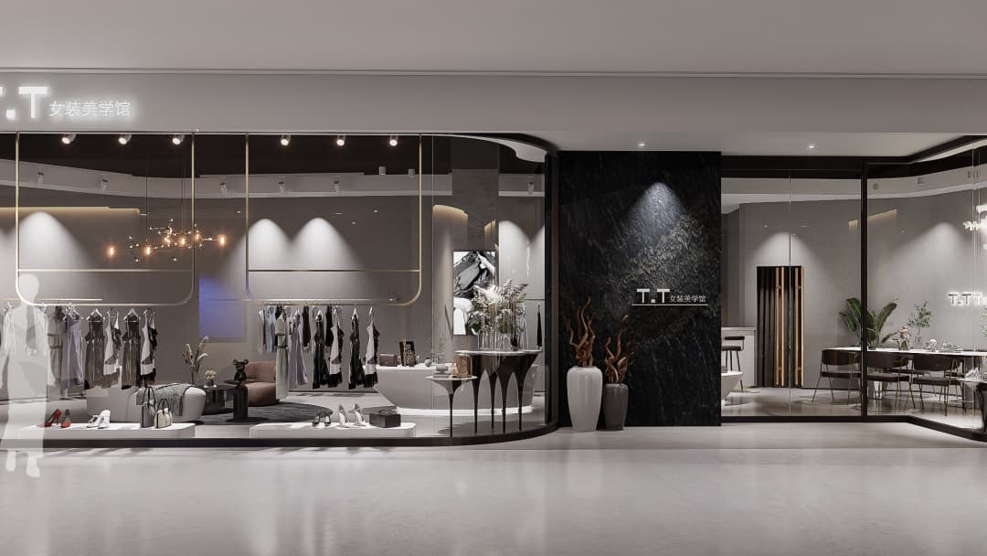 采用高显色照明系统突显服装质感,搭配模块化展架灵活调整陈列;私密试衣区配备智能梳妆镜与人性化挂衣区,兼顾功能性与舒适度。