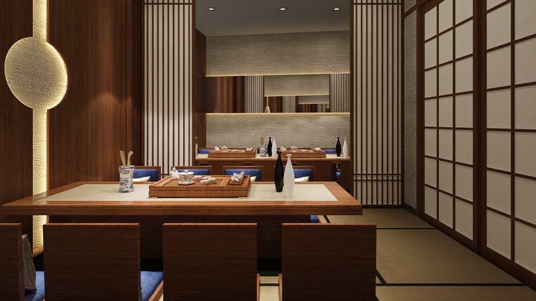 材质与氛围:选用原木、石材等自然材料,搭配低饱和色调与线性照明,营造静谧禅意的环境。