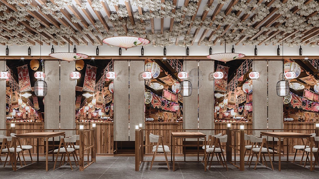 材质与氛围:选用原木、竹编、素色涂料等天然材料,搭配暖黄灯光与庭院枯山水造景,营造静谧雅致的用餐环境。