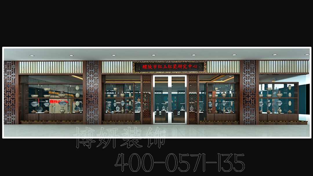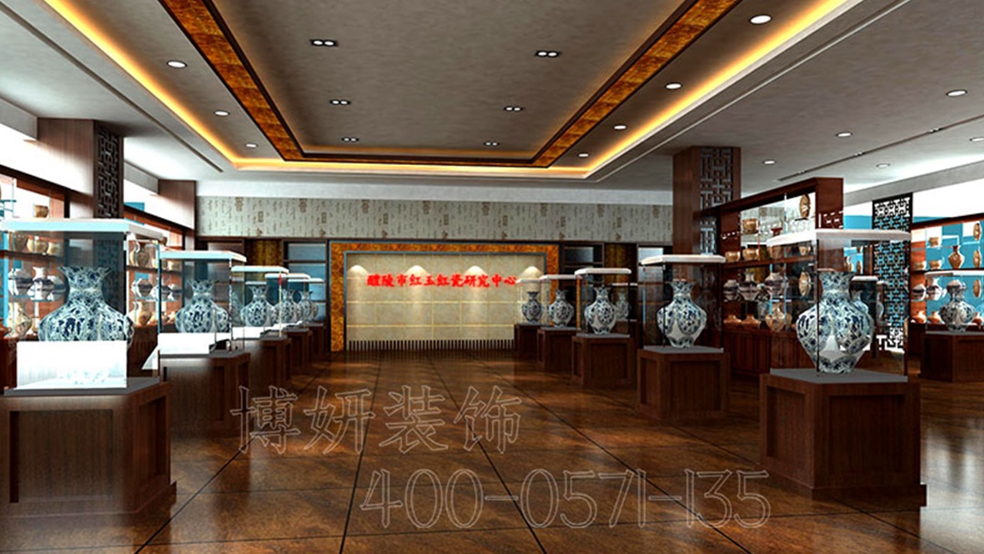 杭州青瓷文化展厅装修设计,以独特设计唤醒千年瓷韵。展厅入口,复古红色墙面夺目却不失典雅,似在诉说着青瓷往昔的辉煌,瞬间抓住参观者的目光。步入其中,木质格栅巧妙划分空间,其温润质感与复古红墙相得益彰,营造出古朴又温馨的氛围。阳光透过格栅洒下,光影交错间,增添了几分灵动与诗意。青瓷展柜,采用定制设计,以沉稳色调衬托青瓷的温润如玉。展柜内,灯光精准聚焦,让每一件青瓷的细腻纹理与独特釉色清晰展现。从经典器型到创新佳作,在复古与现代融合的空间里,参观者能沉浸式感受青瓷文化的深厚魅力,开启一场穿越时空的文化对话。