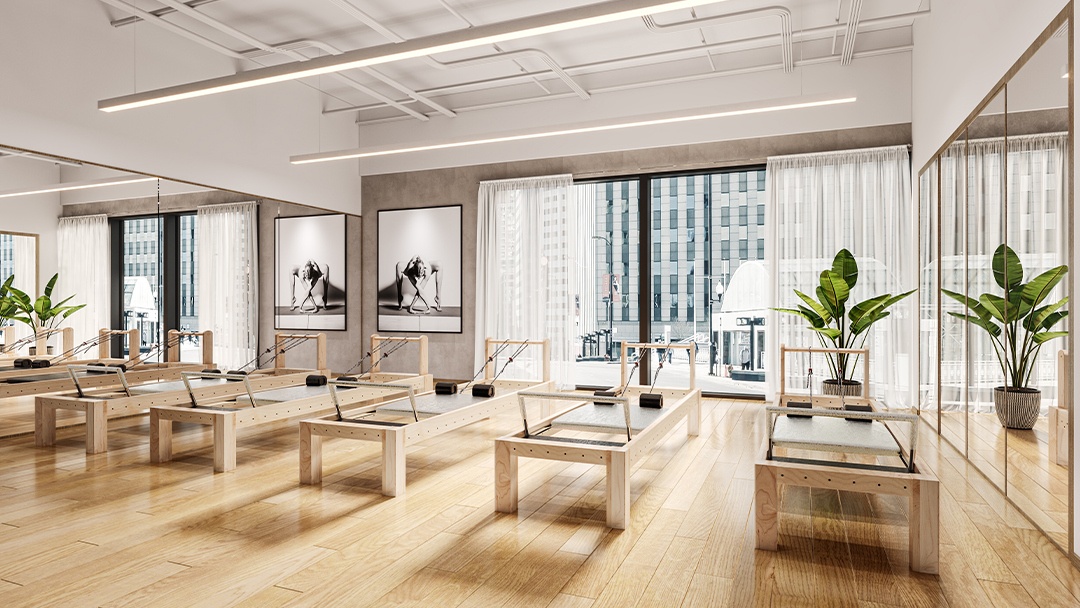 杭州瑜伽普拉提馆装修设计,本案以「流动的平衡」为设计理念,空间采用柔弧曲面墙与橡木地板结合,营造温暖包容的氛围。定制可调节天窗系统,精准控制自然光入射角度,配合隐藏式声学穹顶优化听觉体验。核心区设置悬浮式普拉提重组器械墙,实现空间多功能转换。冥想区墙面嵌入热感壁画,接触时显现植物脉络光影。整体以低饱和色彩为基调,打造身心合一的沉浸式疗愈场域。