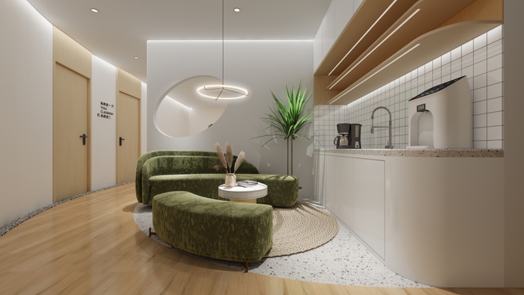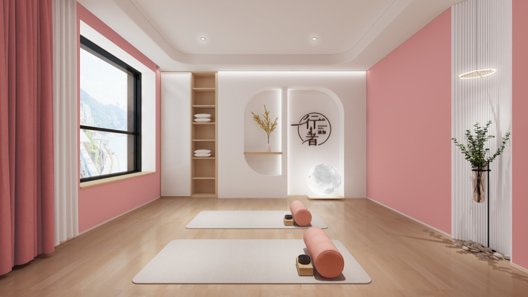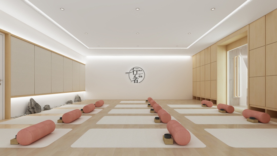 杭州原木风瑜伽馆装修设计,本案以「木与光的呼吸」为主题,全线采用可再生原木构建空间骨架。天花交错排列榫卯结构木梁,自然光线透过格栅形成动态光影。墙面嵌入苔藓艺术装置与隐形声学系统,保证静谧体验。地面铺设天然剑麻地垫,起伏处延伸为定制木质辅具陈列墙。重点打造「年轮冥想区」,中心环状木纹地台搭配地暖,墙面投影森林季相变化影像,实现人与自然在呼吸间的深度连接。