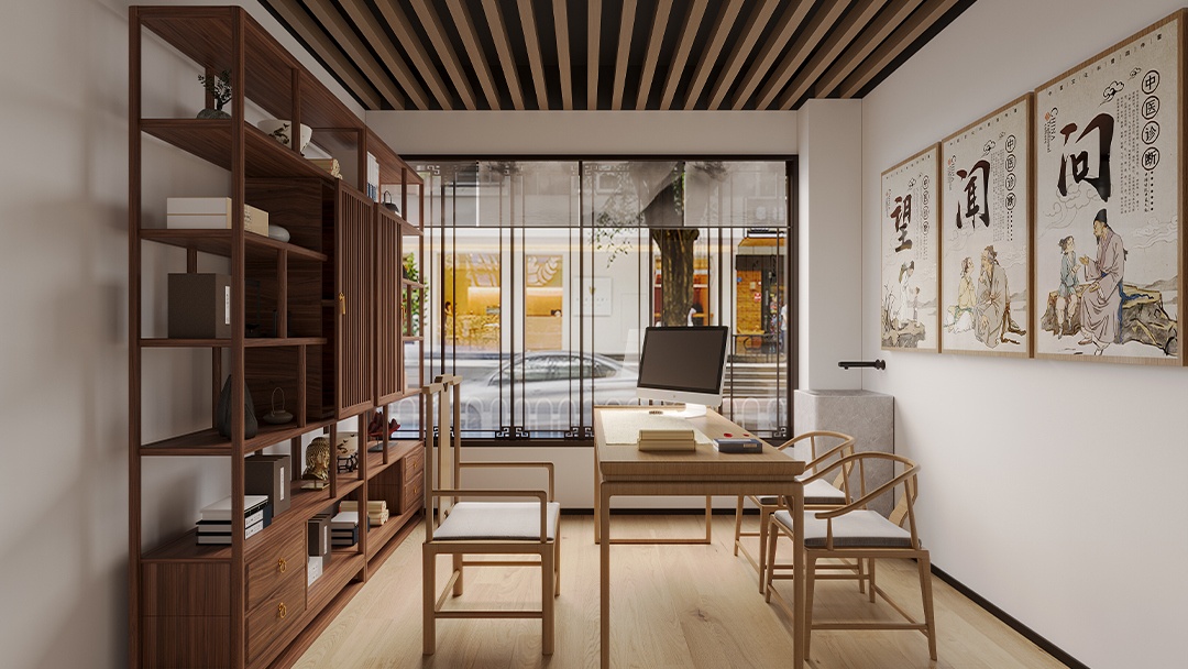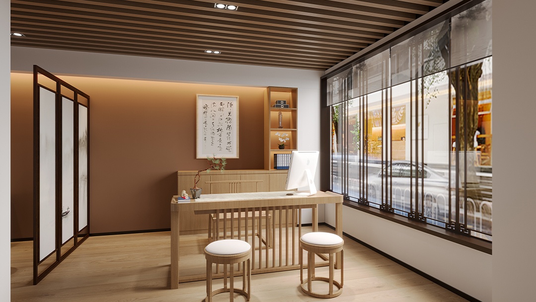 杭州社区便民中医馆装修设计,本案以“亲和与可达”为核心,营造如邻里客厅般的温馨就诊环境。空间以浅原木与暖白色调为主,入口设开放式咨询台与自助查询屏,降低传统医馆的疏离感。候诊区结合阶梯式书架与社区健康宣传栏,座椅灵活组合便于交流。诊疗室采用磨砂玻璃隔断,兼顾私密性与通透感。重点打造“药香体验角”——展示常用草本标本与代茶饮配方,整体以无障碍设计贯通动线,构建亲切、明亮、功能复合的社区健康驿站。