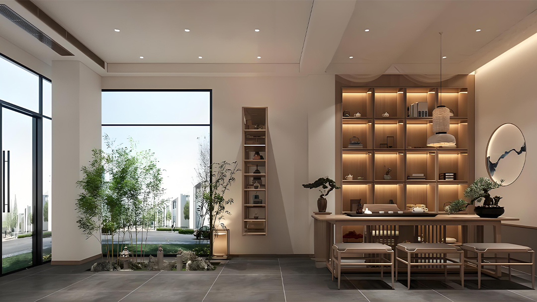 采用无主灯设计、隐藏式收纳系统及模块化家具布局,最大化利用空间;通过低饱和度色调搭配自然材质,营造宁静雅致的氛围。
