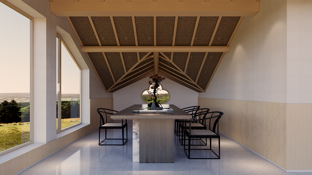 采用原木、竹编、素水泥等天然材质,搭配哑光金属收边条提升细节质感;通过透光云石、镂空屏风与智能调光系统,营造“虚实相生”的静谧氛围。 - 空间功能的禅意表达