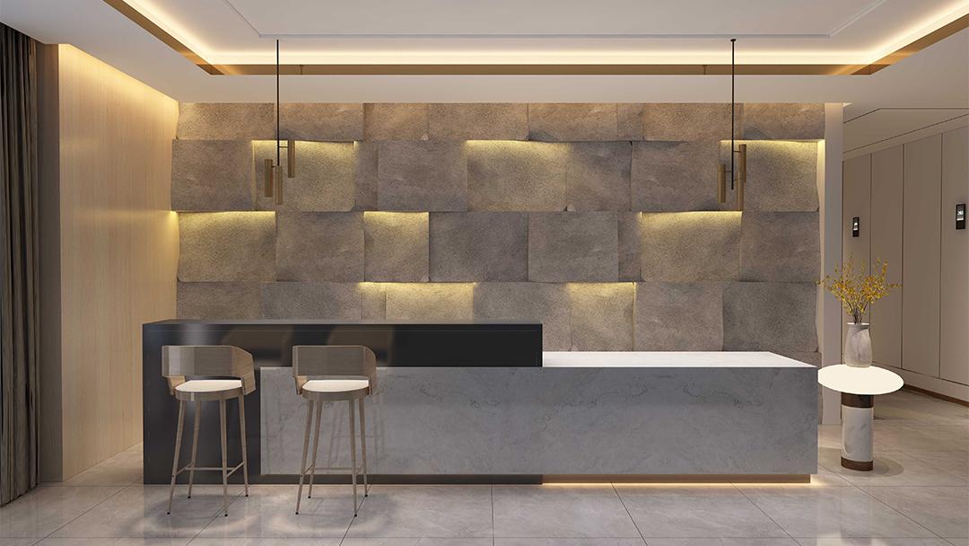 杭州精品商务酒店装修设计,本案以“隐逸商务”为核心理念,巧妙融合东方禅意与现代高效。大堂以浅灰石材构建出宁静雅致的抵达体验,前台背景墙嵌入动态水墨数字屏风,动静相宜。客房采用模块化智能系统,一键切换会议、休憩模式;隔音墙体与人体工学办公家具,保障高效工作。重点打造24小时静音共享书房与城市观景茶室,为商务旅人提供闹中取静的能量补给站,实现商务功能与心灵休憩的完美平衡。