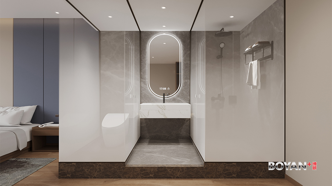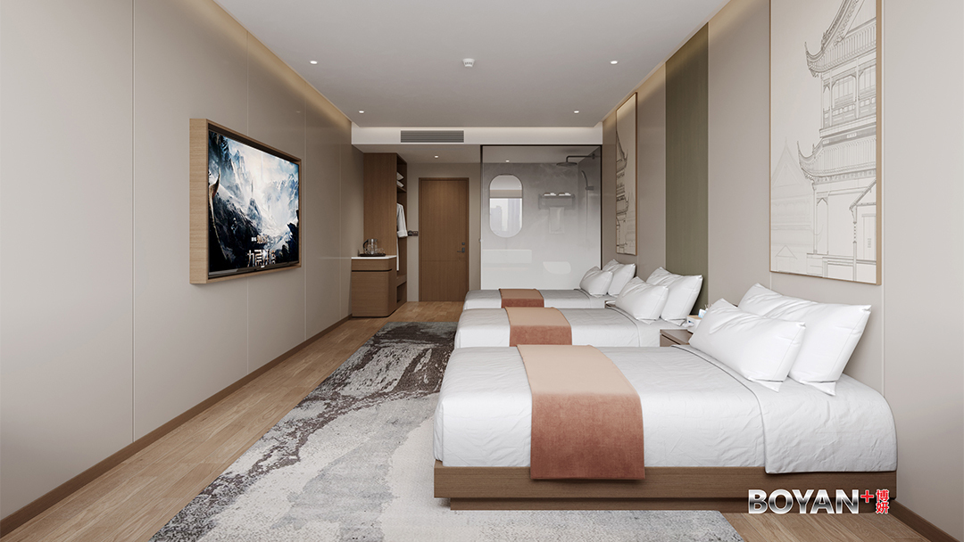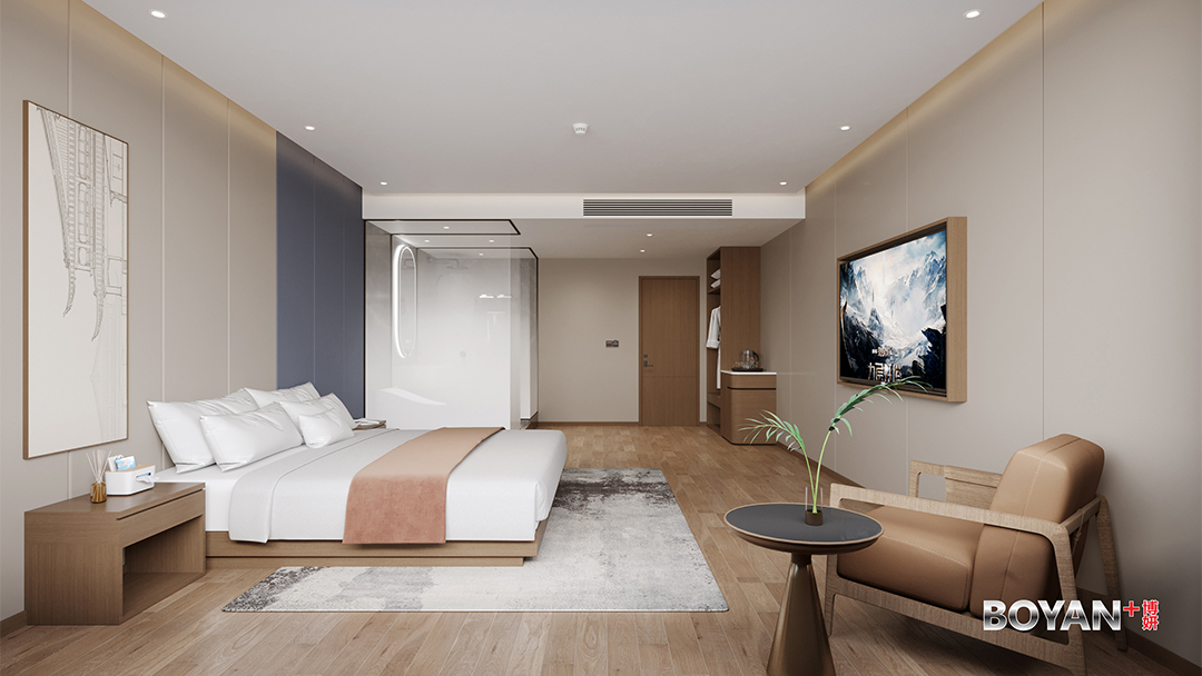 杭州主题套房酒店设计装修,本案以“一室一宇宙”为核心概念,打造八大沉浸式叙事场景套房。其中“茶山秘境”套房复刻龙井梯田景观,植入雾化玻璃与光影模拟晨雾山岚;“宋韵书阁”套房以立体藏书墙面搭配可移动阁楼卧榻,营造文人栖居意趣。每间套房均整合智能情境控制系统,一键切换氛围照明、音效与香氛,并隐藏式集成拍摄辅助灯光,完美兼顾深度体验与社交媒体传播需求,实现主题酒店差异化竞争优势。