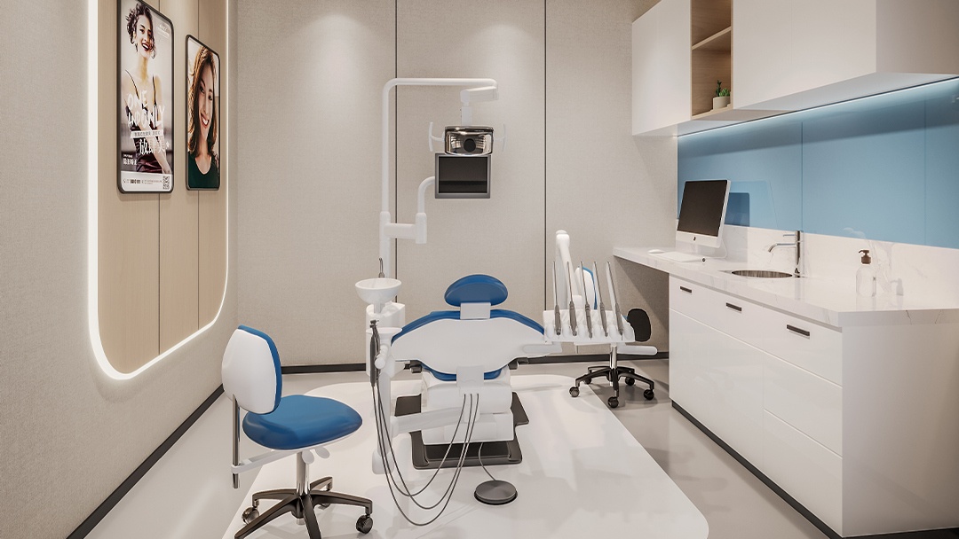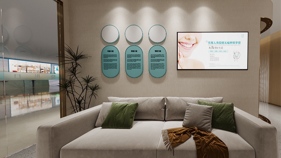 针对口腔诊所的特殊性,博妍装饰从三大维度打造高性价比方案:在功能布局上,严格遵循医疗规范,划分接待区、诊疗区、消毒供应区等核心板块,确保洁污分流、动线高效;在材料选择上,采用医用级抗菌板材、无缝地面处理系统及环保涂料,既保障环境安全又控制长期维护成本;在人性化体验方面,通过柔光漫反射照明、低饱和度色彩搭配以及静音隔音设计,提升患者舒适度的同时降低运营能耗。