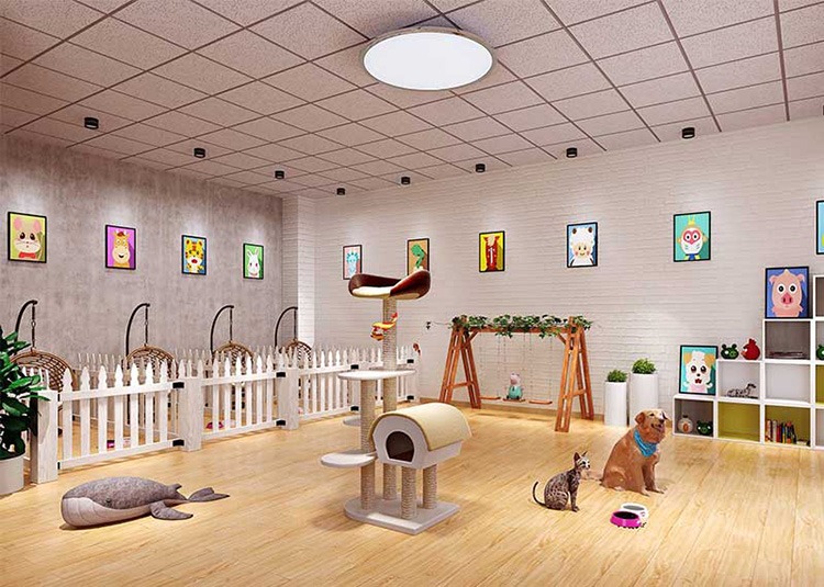 1、分区设计:按宠物体型划分独立寄养间,单间面积4-6平方米,配备新风系统与温湿度调节设备,适应杭州梅雨季高湿环境。寄养间门采用透明亚克力板,降低宠物焦虑感,同时便于员工观察。
