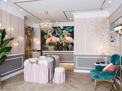 三、色彩搭配与材质选择也不容忽视。柔和的色调能营造出宁静、放松的环境,而高品质的装修材料则能提升美容院的整体质感。此外,智能化元素的融入也是当下趋势,如智能照明、温控系统等,能为顾客带来更加便捷、舒适的体验。