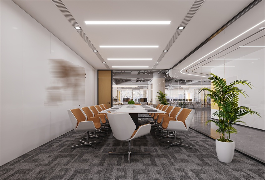在会议室设计中,可引入声学模块化吊顶系统,结合吸音棉与扩散体,确保会议内容不被外泄,同时提升语音清晰度。此外,合理规划空调、新风系统等设备的位置,避免机械噪音影响办公环境。