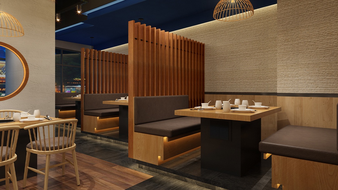 功能深化:包间内整合智能点餐系统与高效通风设计,提升运营效率与用餐体验。