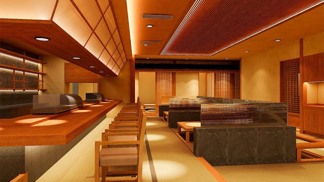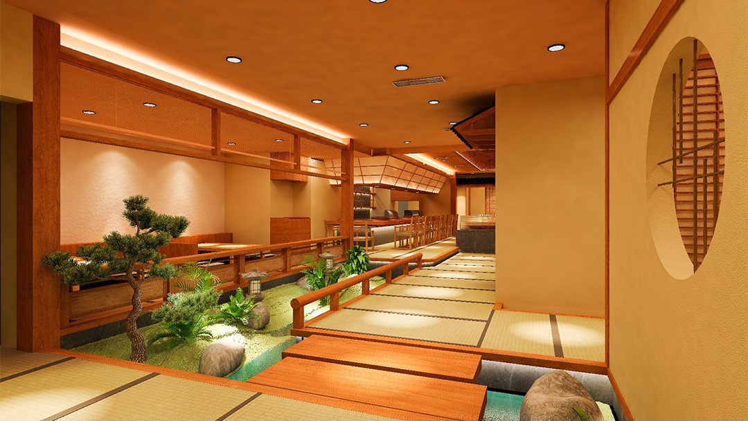 材质与氛围:选用原木、竹编、素色涂料等天然材料,搭配暖黄灯光与庭院枯山水造景,营造静谧雅致的用餐环境。