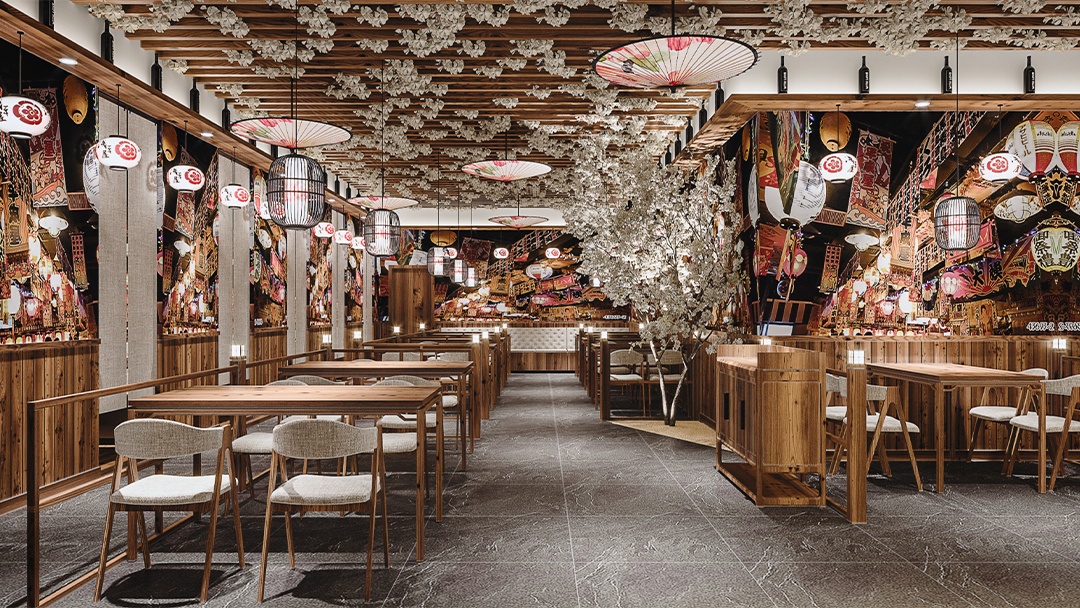 材质与氛围:选用原木、竹编、素色涂料等天然材料,搭配暖黄灯光与庭院枯山水造景,营造静谧雅致的用餐环境。