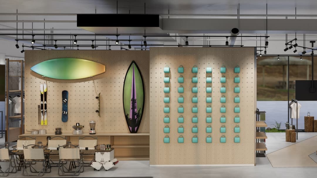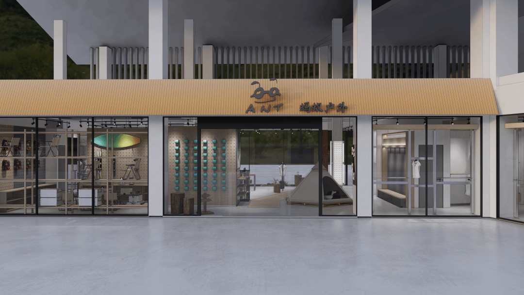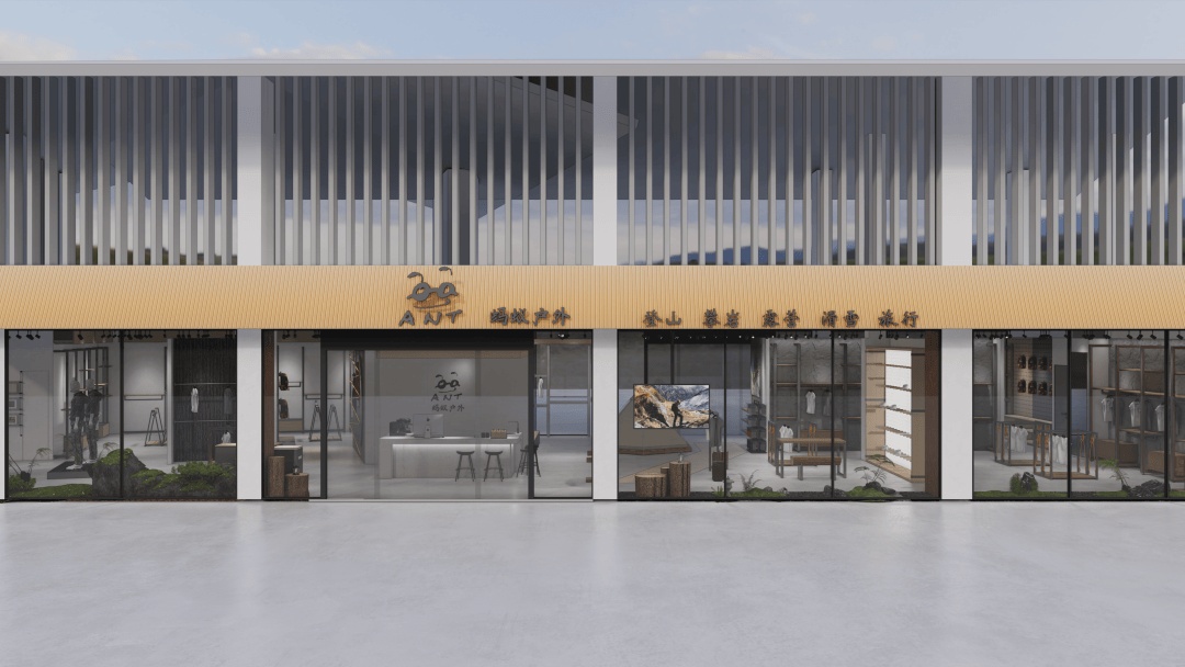 • 沉浸式场景营造:运用岩石纹理、绿植墙及仿木质元素还原自然氛围,搭配可调节色温的射灯模拟不同时段光线,强化产品在登山、徒步等场景中的适配性;