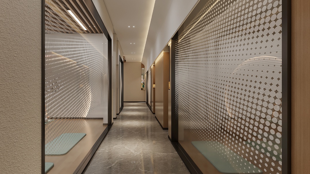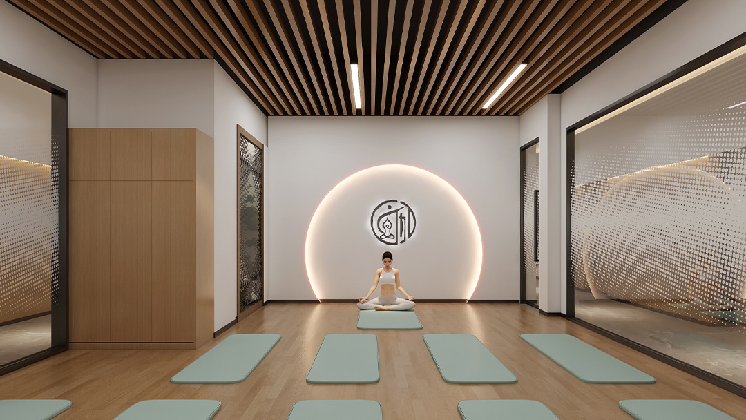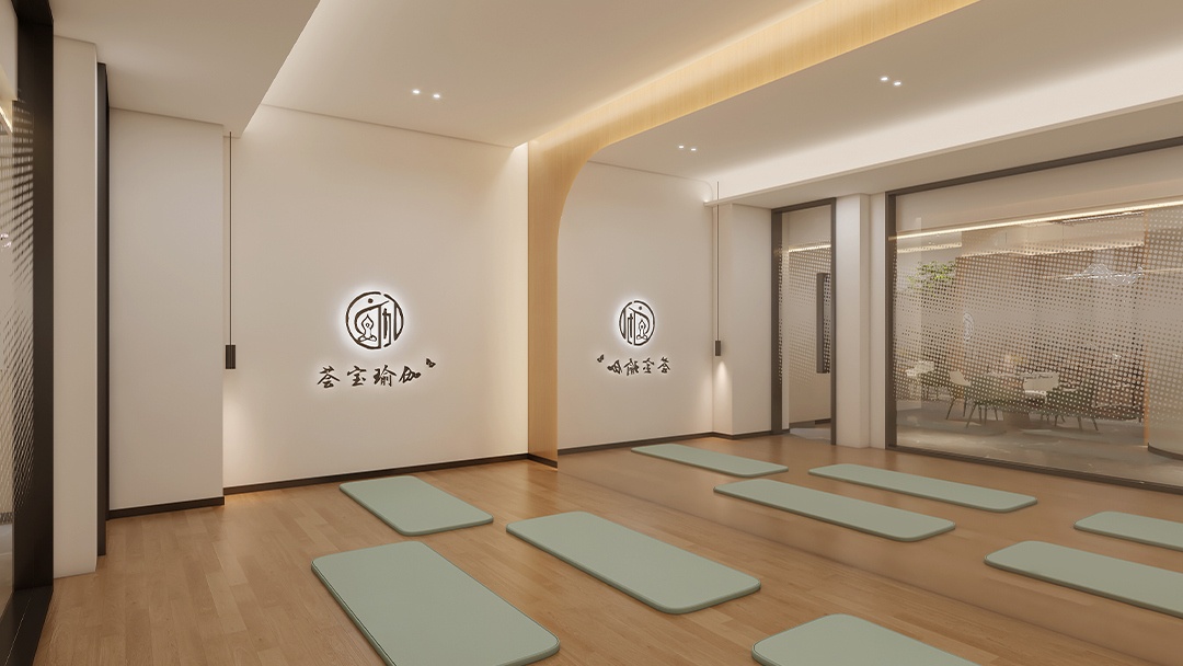 杭州禅意瑜伽馆装修设计,本案以「空谷回音」为意境内核,将江南园林的借景手法引入室内。以夯土墙面为背景,顶部开设条形天窗,随着时辰变化在微水泥地面投下流动光斑。定制弧形竹编屏风区隔空间,搭配枯山水白沙庭院造景。重点打造「听雨冥想轩」——隐藏式喷雾系统配合仿真雨声音频,蒲团下设置地暖温控系统。空间无主灯设计,仅以陶罐灯与壁龛烛光点缀,营造出静观内省的东方禅修之境。