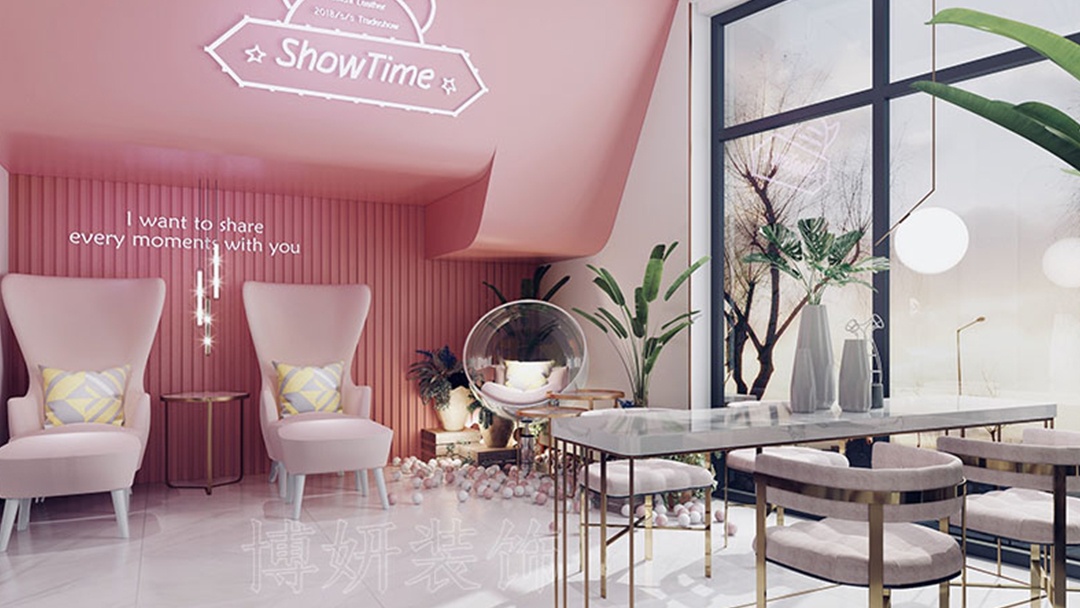 - 场景化功能延伸:粉色墙面,可划分不同功能区——接待区用浅粉搭配绿植打造清新感;护理区,以深粉配暖光营造私密氛围,拍照区设置3D立体粉色背景墙,成为客户自发传播的打卡点。