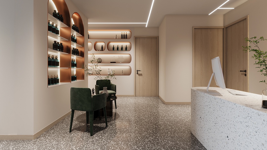 杭州现代简约美容院,以大理石地面,勾勒精致美学空间。踏入其中,首先映入眼帘的便是那质感卓越的大理石地面。其细腻的纹理,似天然水墨晕染,低调中尽显奢华,为整个空间奠定了沉稳大气的基调。地面与简洁流畅的线条墙面相呼应,搭配柔和的灯光,营造出静谧而舒适的氛围。没有过多繁杂的装饰,却凭借大理石本身的独特魅力,彰显出高雅格调。在这里,大理石地面不仅是一种装饰,更是品质的象征。它耐磨易清洁,为日常运营提供便利;顾客行走其上,每一步都仿佛踏在艺术之上,身心也随之放松。这家美容院,以现代简约之姿,借大理石地面之韵,为杭州的爱美人士打造出一处专属的精致变美空间。