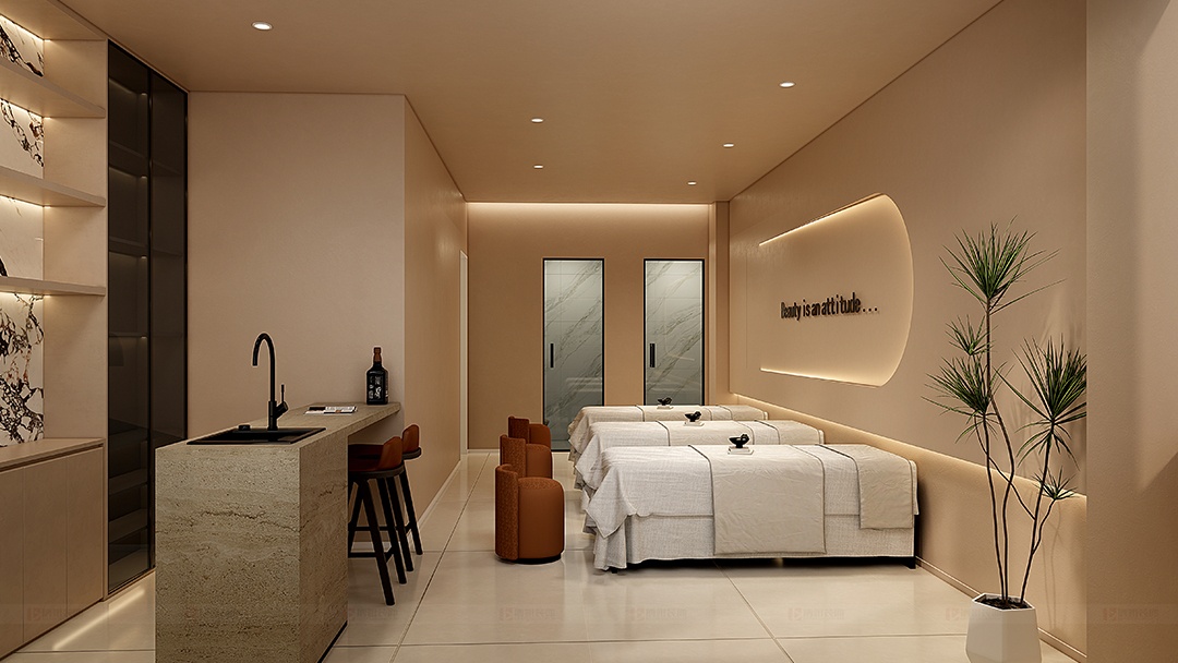 高端美容SPA的装修设计,以细腻笔触勾勒空间情绪。我们以暖色调为基底,精选米白、浅咖、琥珀金等低饱和度色彩,通过墙面、织物与灯光的层次叠加,营造出如阳光倾洒般的温柔包裹感,让每一位踏入者瞬间卸下疲惫,沉浸于温暖而私密的疗愈氛围。空间布局上,弧形隔断与流线型家具弱化棱角,搭配天然胡桃木饰面,传递低调的奢华质感。智能调光系统与隐藏式灯带交织出柔和光影,辅以香氛与自然音效,打造多维感官体验。从接待区到护理室,每一处细节均以“暖”为引,让高端不止于表面,更化作触手可及的身心呵护。