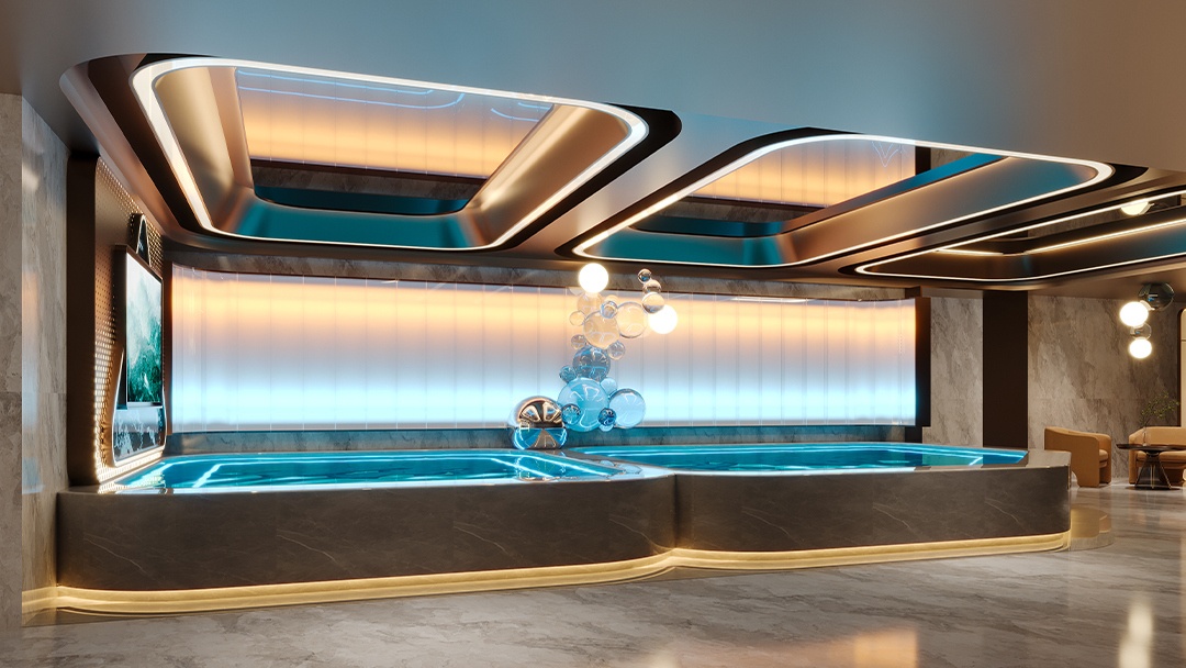 杭州商务型足疗会所装修设计,本案以“高效疗愈场”为核心,将商务洽谈与健康管理无缝融合。包厢配备隔音墙板与智能雾化玻璃,可一键切换私密会议模式,内置无线投屏与降噪通话系统。足疗位集成人体工学按摩沙发与可升降办公桌板,侧墙嵌入空气质量监测屏与经络数据可视化图表。走廊设计为艺术画廊式静音通道,重点打造“雪茄茗茶双栖厅”——融合恒温存茶柜与独立通风系统,满足商务社交的多维需求。