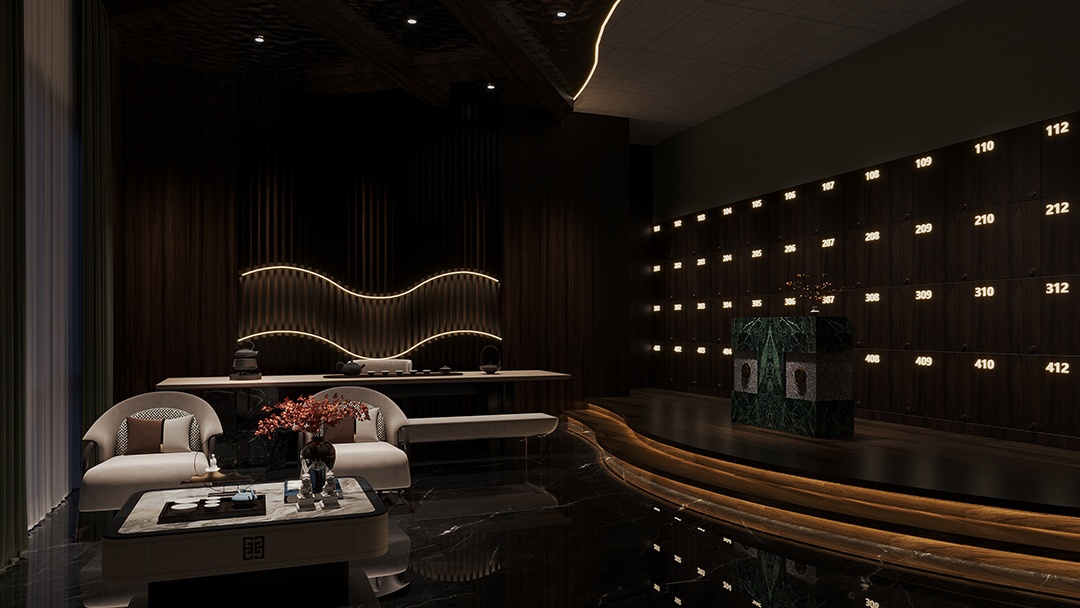 杭州商务风足浴空间装修设计,本案将商务功能与健康管理深度整合。空间采用胡桃木饰面与深灰石材,搭配线性灯光勾勒利落轮廓。包厢配备隔音墙板、可雾化玻璃及隐藏式会议投屏系统,实现办公与疗愈场景的无缝切换。足疗位集成人体工学按摩系统与无线充电模块,侧墙嵌入空气监测数据屏。融合恒温酒柜与独立通风,满足商务社交的复合需求。