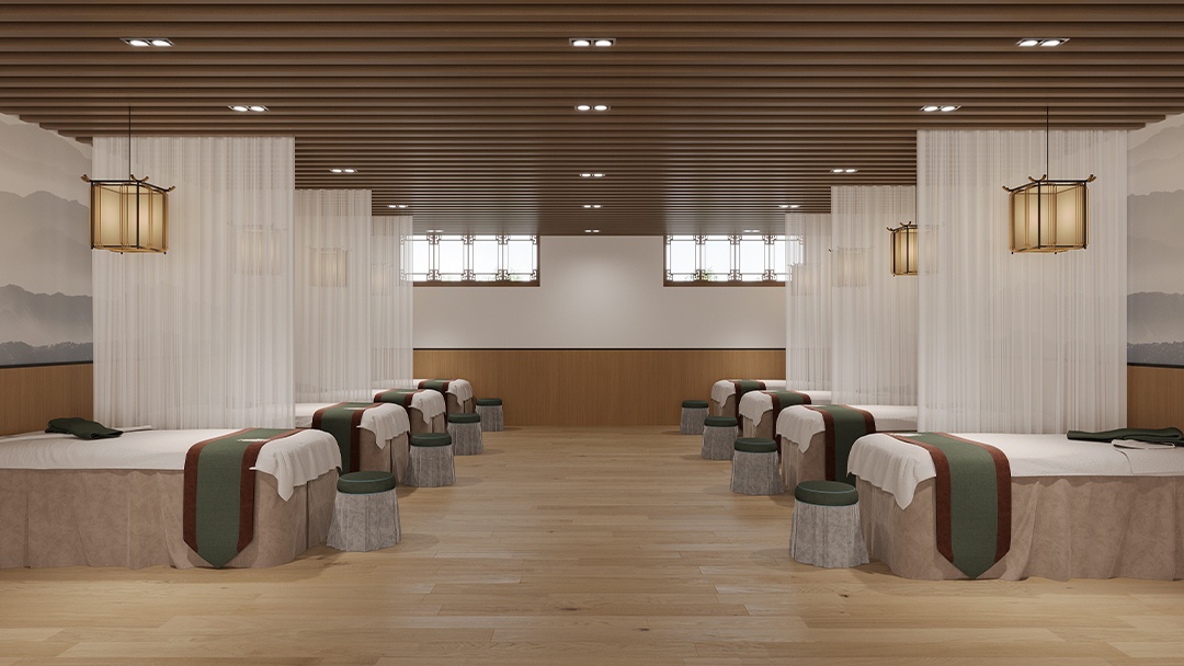 杭州社区便民中医馆装修设计,本案以“亲和与可达”为核心,营造如邻里客厅般的温馨就诊环境。空间以浅原木与暖白色调为主,入口设开放式咨询台与自助查询屏,降低传统医馆的疏离感。候诊区结合阶梯式书架与社区健康宣传栏,座椅灵活组合便于交流。诊疗室采用磨砂玻璃隔断,兼顾私密性与通透感。重点打造“药香体验角”——展示常用草本标本与代茶饮配方,整体以无障碍设计贯通动线,构建亲切、明亮、功能复合的社区健康驿站。